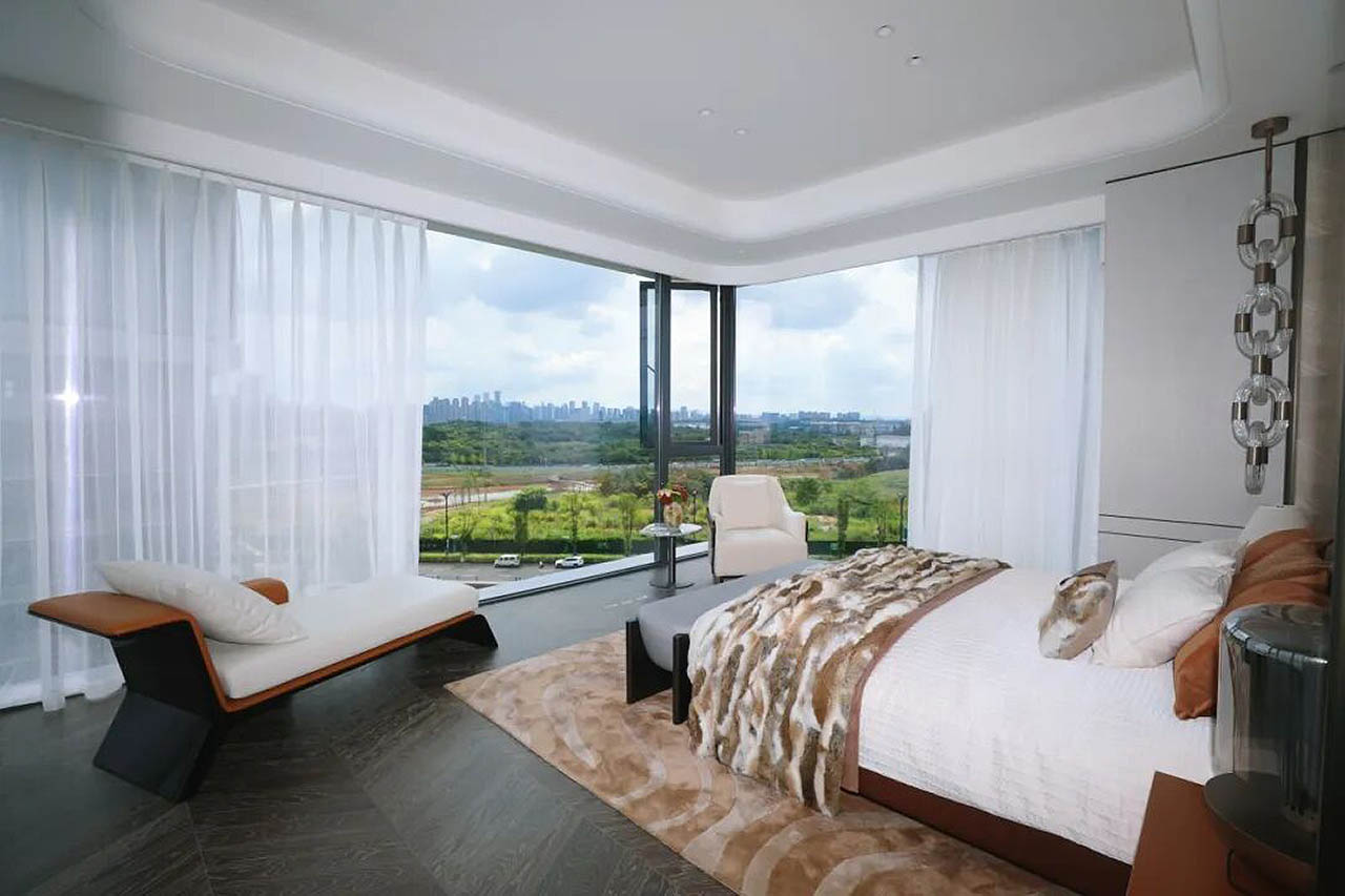 双入户花园设计,不仅提供了过渡空间,更实现了“内外分区”的生活场景。主人归家,可通过专属电梯直达私人花园,进入室内;客人到访,则可通过主入口直接进入客厅区域。