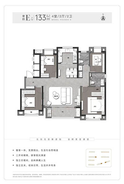 以“一带、一核、双轴”规划约7.8万㎡社区和园林空间,打造四重归家空间、十重功能空间,建面约82-133㎡精装宅邸,灵动2-4房,三开间朝南、盛纳阳光清风,悦赏全明空间,满足家庭成长所需,极具居住尊享感受。